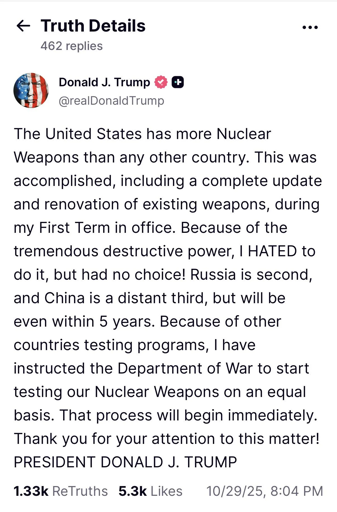 arrow-up1397arrow-down1imageTrump Commands War Department to Test Nuclear Weaponsplus-squarelemmy.worldMuskyMelon@lemmy.world · edit-217 hours agomessage-square105linkfedilink
