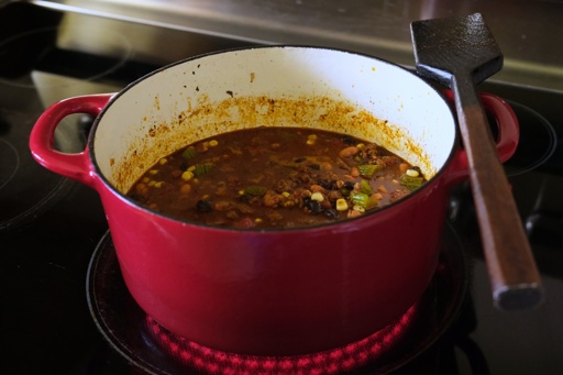I stewed this chili for four hours. I always stew for a least two hours but prefer how it tastes at four hours. You have to know when to add ingredients depending on how long you cook it. Adding things too early will lead to overcooked ingredients.