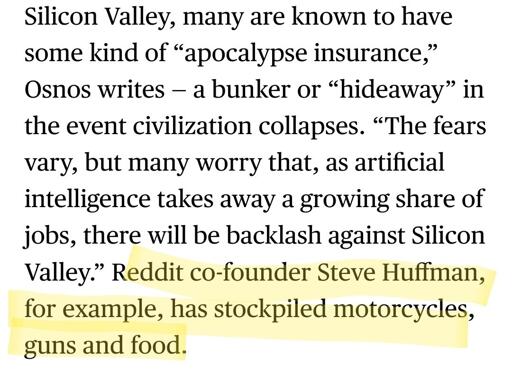 Key words in that sentence: give you those things. I doubt the lord tech bro could do any of that if the apocalypse happened tomorrow.