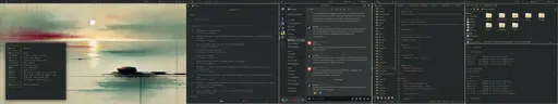 alacritty firefox vesktop pragtical editor thunar eza DOTS: https://codeberg.org/ranjan/niri-dots/src/branch/waterbody