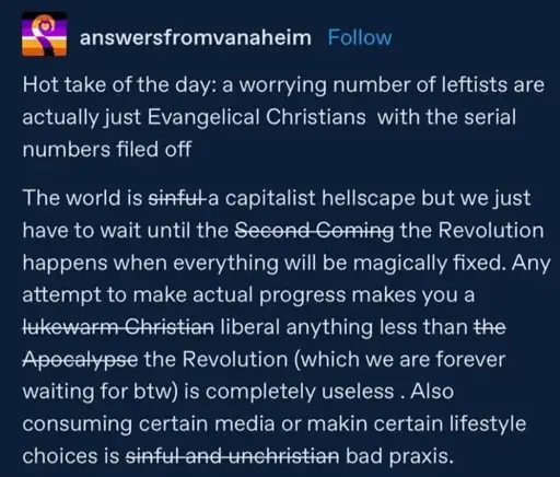refer to my later comment, it isn’t the organization name, it is a reaction to talking about doing the individual things, things they are doing, and being told it is worthless incrementalism