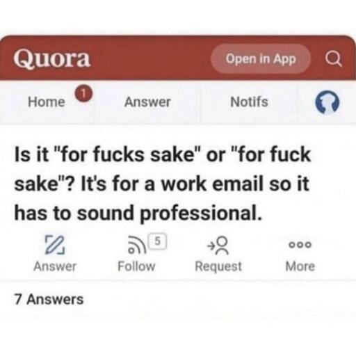If you invoke fuck’s sake in corporate correspondence you doesn’t have no more fucks to give.