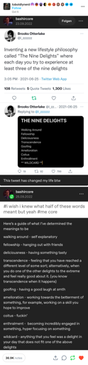 “I wonder how many people will reply only to say they can’t/don’t want to experience one or more of the nine delights.”