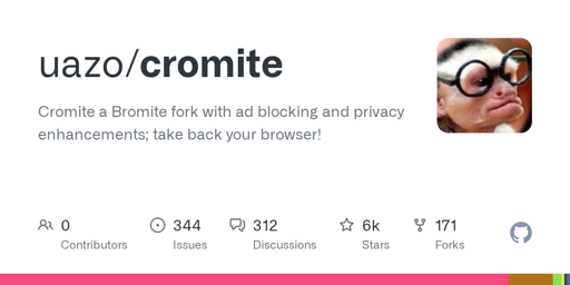 mistermodal@lemmy.ml to Privacy@lemmy.ml · edit-29 days agoCromite a Bromite fork with ad blocking and privacy enhancementsgithub.comexternal-linkmessage-square41linkfedilinkarrow-up1103arrow-down12file-textcross-posted to: privacyguides@lemmy.oneandroid@lemmy.world