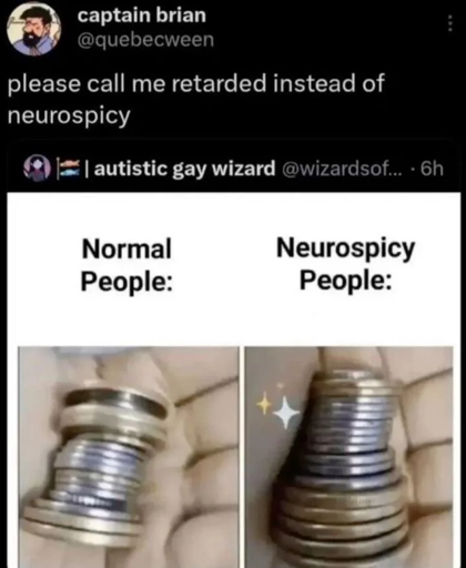 Shit, I even forgot to mention how people with their “look at me” list of self-diagnoses make people with REAL disorders feel inadequate or imposters. In comes TikTok Grifty McAutism talking about how they got their shit together and a legion of undiagnosed cosplayers (who really just needed to learn some personal responsibility and life skills) doing the “omg, me too, this helped so much”. Meanwhile the person with actual struggles is made to feel like either, a) they’re not trying hard enough, or b) they’re a lost cause.