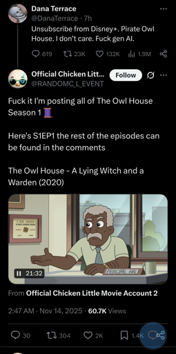 Cevilia (she/they/…)@lemmy.blahaj.zone to Fuck AI@lemmy.worldEnglish · 7 days ago"The Owl House" creator Dana Terrace reacts to Disney+'s AI sloplemmy.mlimagemessage-square38linkfedilinkarrow-up1395arrow-down12file-textcross-posted to: piracy@lemmy.dbzer0.com