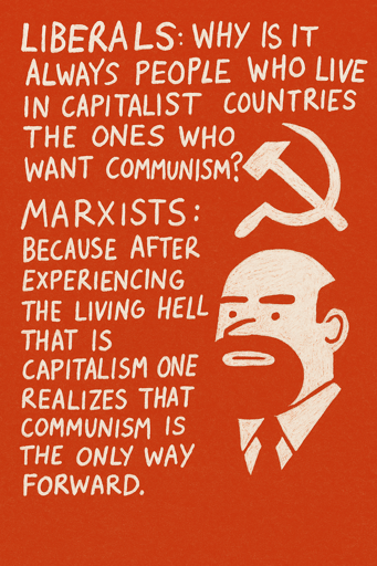 Is that why they cheer on authoritarian/dictatorial communism… we just need one good man/woman/AI in power, and all our problems will be solved. Then they dust off their hands after their thought triggers a tiny dopamine response (thereby confirming its truth), and they feel inspired to post another meme or to downvote a few people silly enough to engage with them by calling them libs or billionaires. 🤣