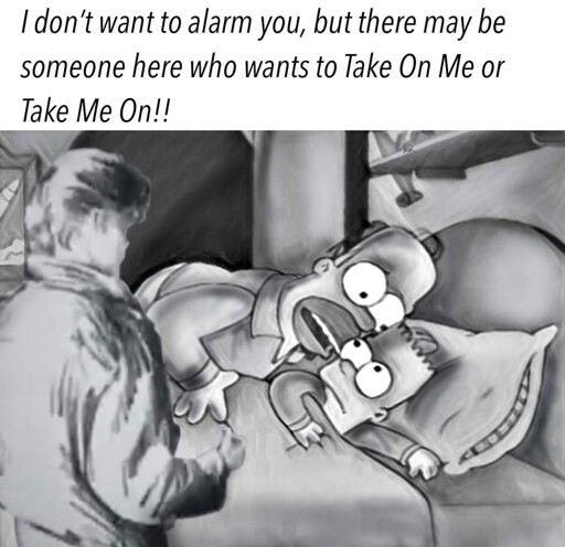 Hey guys. I bet you are wondering why there is no audio - A-HA blocked the video worldwide yesterday 5-2-22. The only way I could keep this video public is by muting the the Take On Me part which really sucks. This was just a fun, goofy meme from the beginning and I don’t see what they have to gain from blocking it. If they end up unblocking it, I will for sure restore the audio.