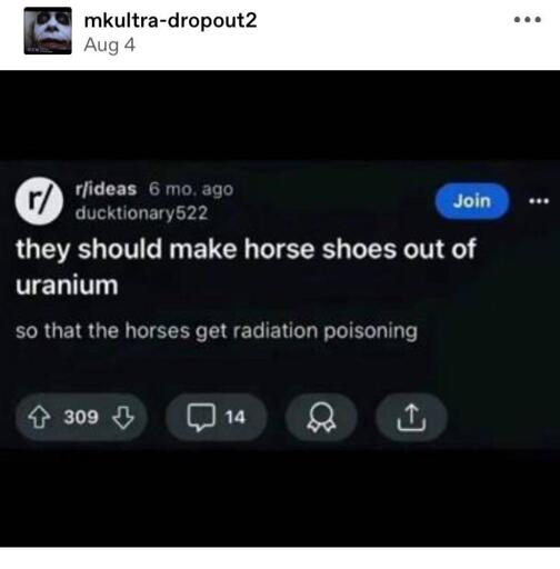 minus-squareVenus_Ziegenfalle@feddit.orglinkfedilinkEnglisharrow-up1·1 day agoso that the horses get radiation poisoning