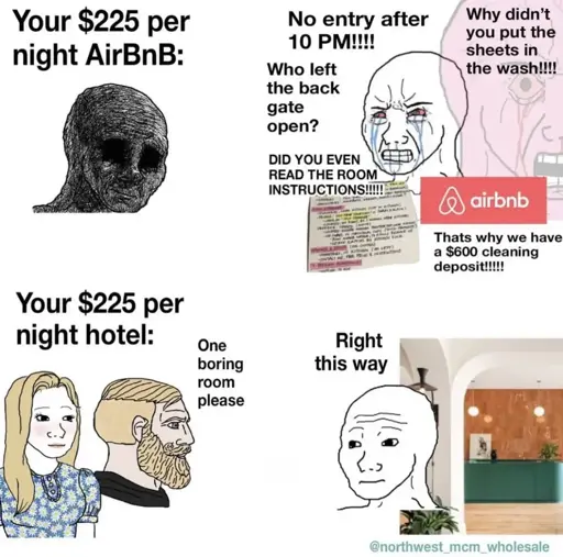 It’s so funny because that’s exactly how capitalism ruins great ideas. I’m actually proud to have never used AirBnB, but when it first came out, it was probably a great way to save vs hotels that were overpriced and have massive overhead anyway.