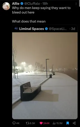 Cause Allie this the one time men are allowed to get in touch with their feelings with no judgement. It’s cinema to go out this way. Way better than dying behind the Arby’s dumpster with your pants down. No one wants to die like that.