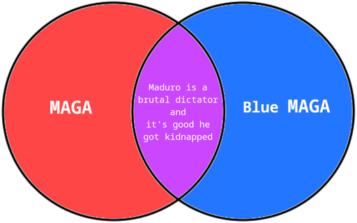 There’s blue maga people, or at least person, who keeps saying Maduro was just extracted by Trump because they are friends… While completing ignoring the death and destruction if it let’s them get one on trump