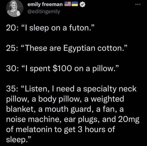 arrow-up1845arrow-down1imageAfter 40, we just don't sleeplemmy.worldickplant@lemmy.world to Funny@sh.itjust.works · 17 days agomessage-square165linkfedilink
