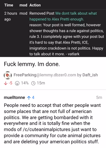 Tbf I wouldn’t complain about dog politics in a dog community, even though it would be nice if I didn’t have to argue against animal cruelty and instead could just look at a pic of a cute doggy, at least it fits the comm. At the same time, if the comm rules decide that dog politics are still politics and therefore banned, then follow the comms rules instead of trying to bully everyone into your rules, which doesn’t sound very leftist to me.